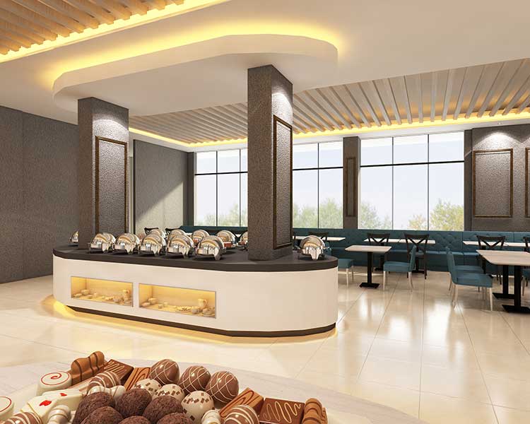 U restoranu hotela služi se izbor sveže hrane sa turske obale Egejskog mora, kao i internacionalna jela. Usluga je All Inclusive, sa samoposluživanjem – izborom više jela po principu švedskog stola za doručak, kasni doručak, užine, ručak, večeru, dijetalni i dečiji meni, sve do 22:00h. Doplata se vrši za tursku kafu, ceđeno voće, flaširana i uvozna pića, pranje i peglanje veša, peškire za plažu i usluge u spa centru (masaže, tretmani itd.).