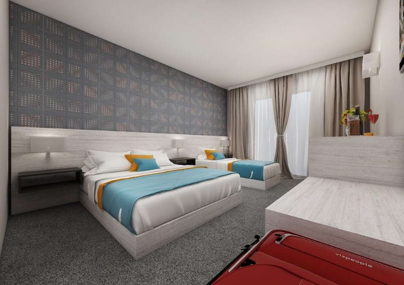Hotel ima 6+1 spratova sa ukupno 164 sobe i kapacitetom od 360 ležajeva, luksuzno opremljenih. Sobe imaju francuski balkon ili balkon, tuš kabinu, LCD TV, satelitske kanale, fen za kosu, klimu, telefon, mini bar (uz doplatu), ogledalo za šminkanje, sef (besplatno) i besplatan Wi-Fi.Standardne sobe (25m²) imaju jedan bračni krevet ili dva odvojena kreveta.